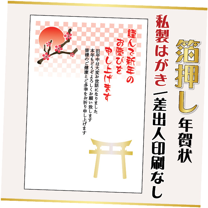 挨拶文の印刷があるので相手先さまの住所をプリンターで印刷したり、書いたりするだけで、手早くすぐに投函できる箔押し年賀状です。