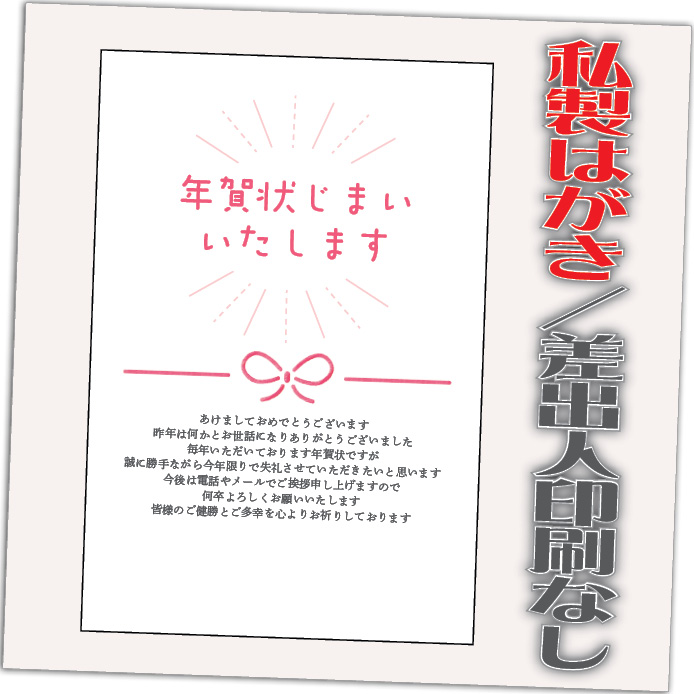 挨拶文の印刷があるので相手先さまの住所をプリンターで印刷したり、書いたりするだけで、手早くすぐに投函できる年賀状じまいです。