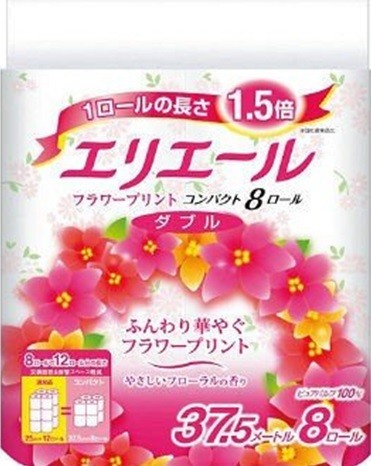 大王製紙 エリエールトイレットフラワープリントコンパクト 37.5m 8ロール ダブル 8パック入り まとめ買い 送料無料