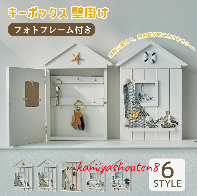 キーボックス 壁掛け 玄関 キーケース インテリア 北欧 コンパクト スマートキーケース モダン 壁掛けミラー 壁掛け時計 フォトフレーム付き 鍵 収納 フック 紛失防止 鍵かけ 海 おしゃれ