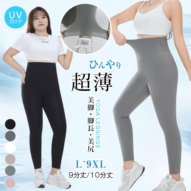 ヨガウェア 9分丈/10分丈クールレギンス 接触冷感 ひんやり 9XL スパッツ ハイウエスト 日焼け対策 ペチパンツ シルキー 大きいサイズ 伸縮性抜群 ストッキング