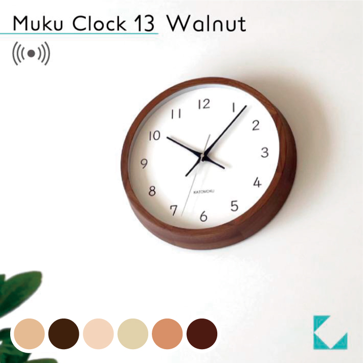 壁掛け時計 電波時計 KATOMOKU muku clock 13 ウォールナット km-104WARC 連続秒針 掛け時計 壁掛け 名入れ対応品 静音 静か おしゃれ
