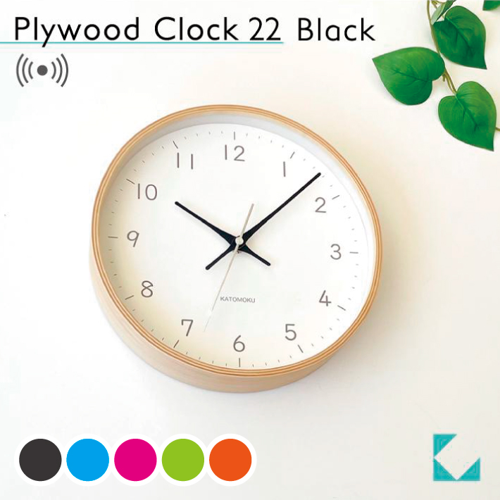 壁掛け時計 電波時計 KATOMOKU plywood clock 22 ブラック km-121BKRC 連続秒針 名入れ対応品 静音 静か おしゃれ