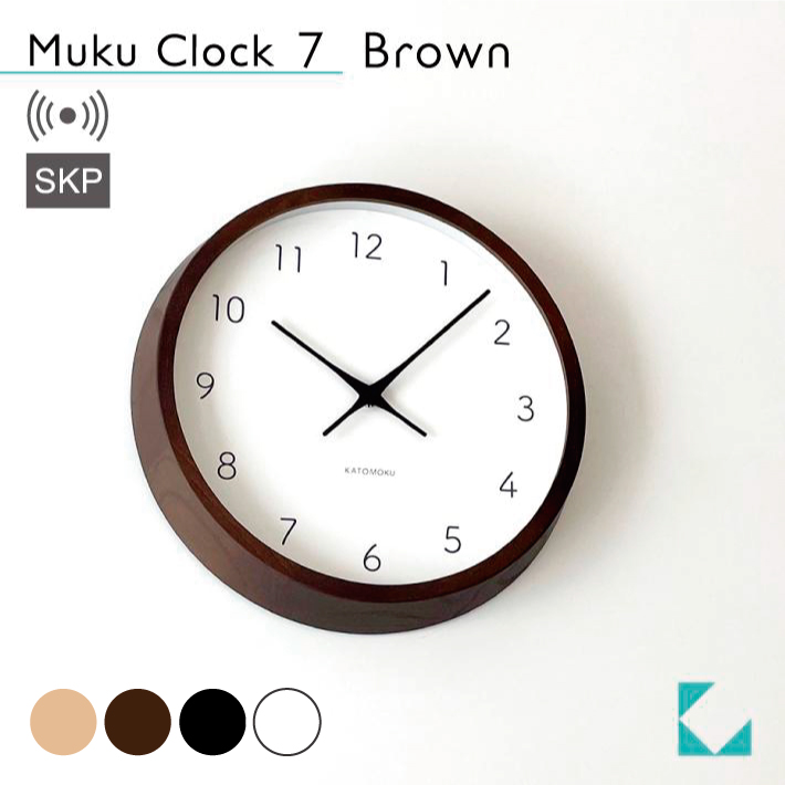 壁掛け時計 電波時計 KATOMOKU muku clock 7 ブラウン km-60BRRCS SKP電波時計 連続秒針 名入れ対応品 静音 静か おしゃれ