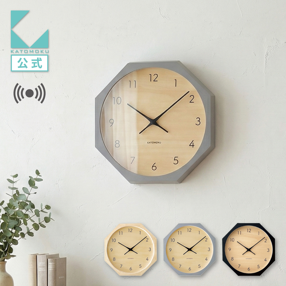 壁掛け時計 電波時計 KATOMOKU muku clock 7 八角形 km-83RC8 連続秒針 名入れ対応品 静音 静か おしゃれ