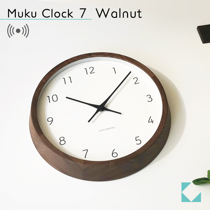 壁掛け時計 電波時計 KATOMOKU muku clock 7 ウォールナット km-93WARC 連続秒針 名入れ対応品 静音 静か おしゃれ