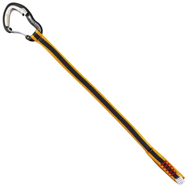 セミリジッドウェビング付きの自動閉鎖カラビナ。遠いボルトに引っ掛けたいときに役立ちます。