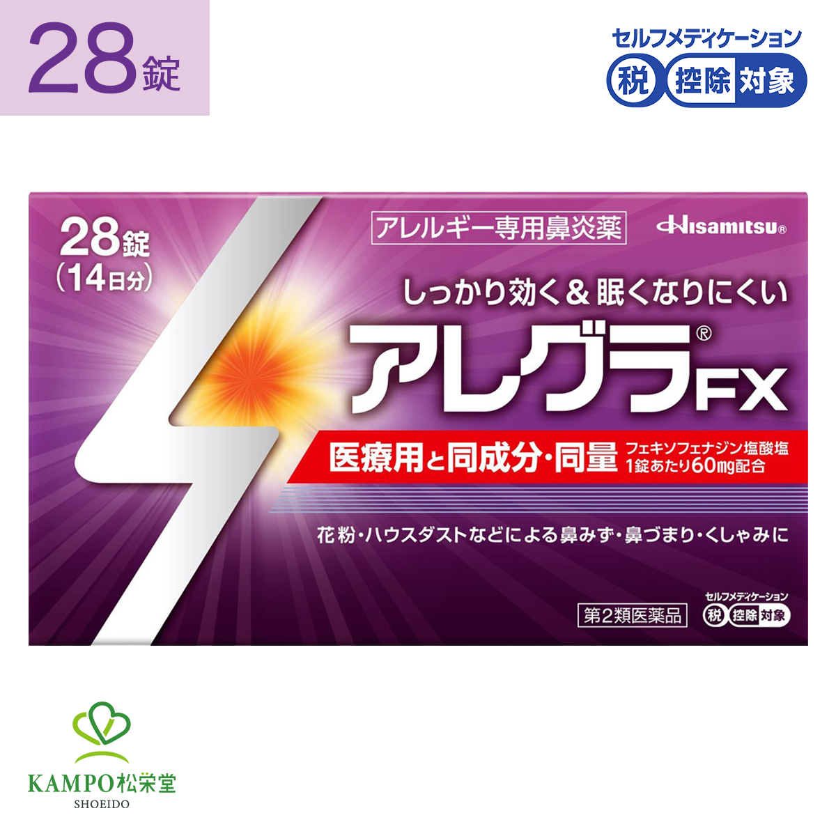 アレグラ FX 28錠 花粉 花粉症 鼻炎 薬 鼻水 鼻詰まり 鼻づまり くしゃみ 鼻 副鼻腔炎 アレルギー ハウスダスト 眠くなりにくい 市販薬 久光製薬