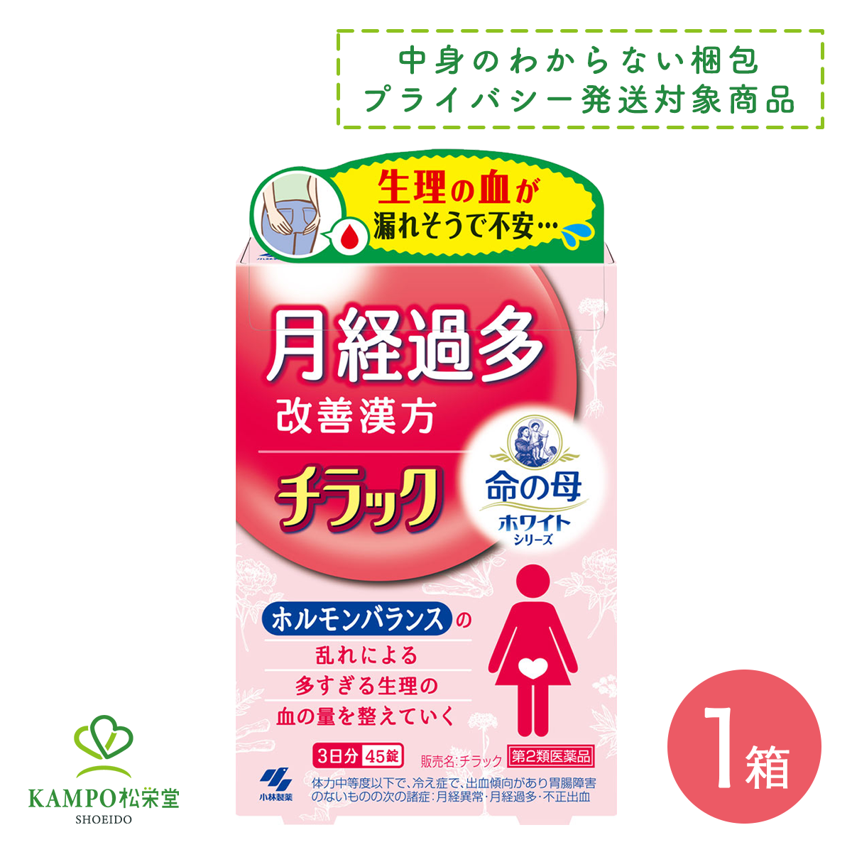 ★ チラック 45錠 月経過多 過多月経 月経 経血量 多い 生理 漏れ 防止 きゅう帰膠艾湯 命の母 ホワイト 漢方薬 市販薬 女性 小林製薬 第2類医薬品