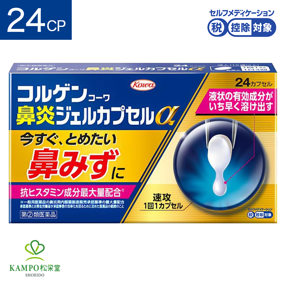 コルゲンコーワ鼻炎ジェルカプセルα 24カプセル 鼻炎薬 鼻水 鼻づまり くしゃみ 副鼻腔炎 アレルギー 花粉症 風邪薬 かぜ薬 カプセル 市販薬 指定第2類医薬品