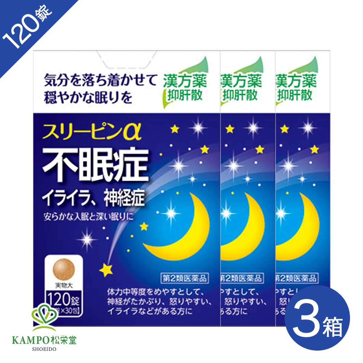 スリーピンα 120錠 ×3個 抑肝散 4錠×30袋 錠剤 漢方薬 不眠 ストレス 睡眠 薬王製薬 不眠 漢方 不眠症 改善 薬 寝つき ストレス解消 精神安定 鬱 第2類医薬品