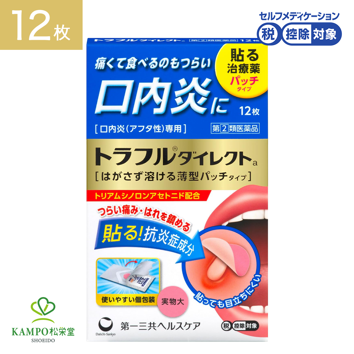 トラフルダイレクトa 12枚 口内炎 舌 トラフル シール パッチ 貼る アフタ性口内炎 唇 頬 子供 5才以上 貼り薬 市販薬 薬 第一三共ヘルスケア 指定第2類医薬品