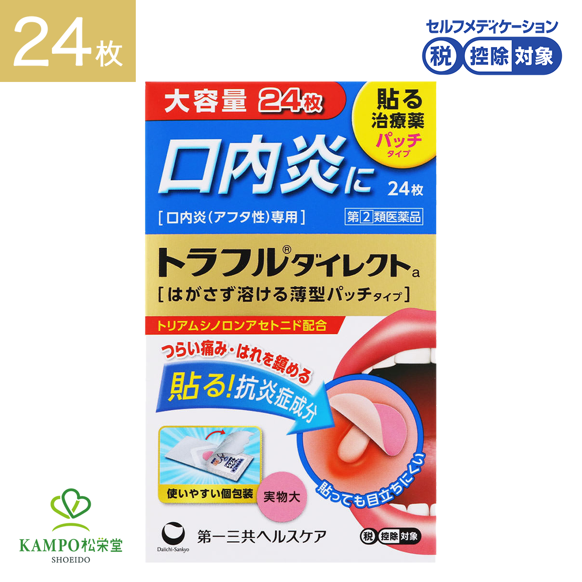 トラフルダイレクトa 24枚 口内炎 舌 トラフル シール パッチ 貼る アフタ性口内炎 唇 頬 子供 5才以上 貼り薬 市販薬 薬 第一三共ヘルスケア 指定第2類医薬品