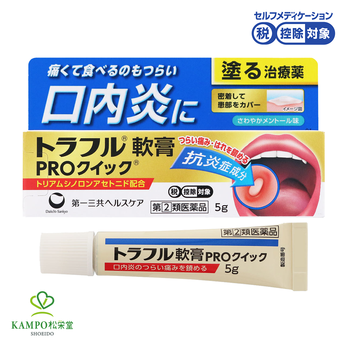 トラフル軟膏PROクイック 5g トラフル軟膏 軟膏 口内炎 舌 トラフル 塗り薬 アフタ性口内炎 唇 頬 裏側 疲労 睡眠不足 ストレス こども 市販薬 指定第2類医薬品