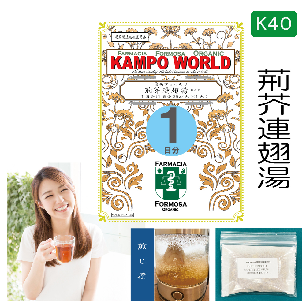 【薬局製剤】荊芥連翹湯K40(けいがいれんぎょうとう)煎じ薬 1日分(25g/包x1)蓄膿症(副鼻腔炎)、慢性鼻炎、慢性扁桃炎、にきび【送料無料】 体力虚弱な方