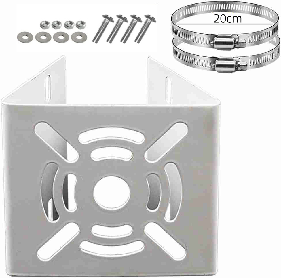 ポール取付金具防錆び加工・静電気防止加工済み。 柱やポールに穴をあけずに、防犯カメラが設置できる軽くて丈夫な取付金具です。 様々なサイズのカメラを設置出来るよう、12個の取付穴と、中央に1つ大きめの穴を適正に設計設置されます、自由度は高いです。 重量:約250g | 使用場所が広い防犯カメラの他ソーラーパネルやセンサーライト、ミラー等も取り付けられます。 空き巣や車上荒らし等の対策として、ご家庭やオフィス、店舗、ガレージ、街頭の防犯にお役立て下さい。 ポールの形状も円柱だけでなく、角柱にも取り付けることができます。 柱やポールに穴をあけずに、防犯カメラが設置できる軽くて丈夫な取付金具です。 注:光撮影やディスプレイによって、実際の商品の色やサイズとウェブサイトのが若干異なる場合があるかもしれません。 | ステンレス製防錆び加工・耐水性・耐熱性に優れて、耐久性に関しても安心感があります。