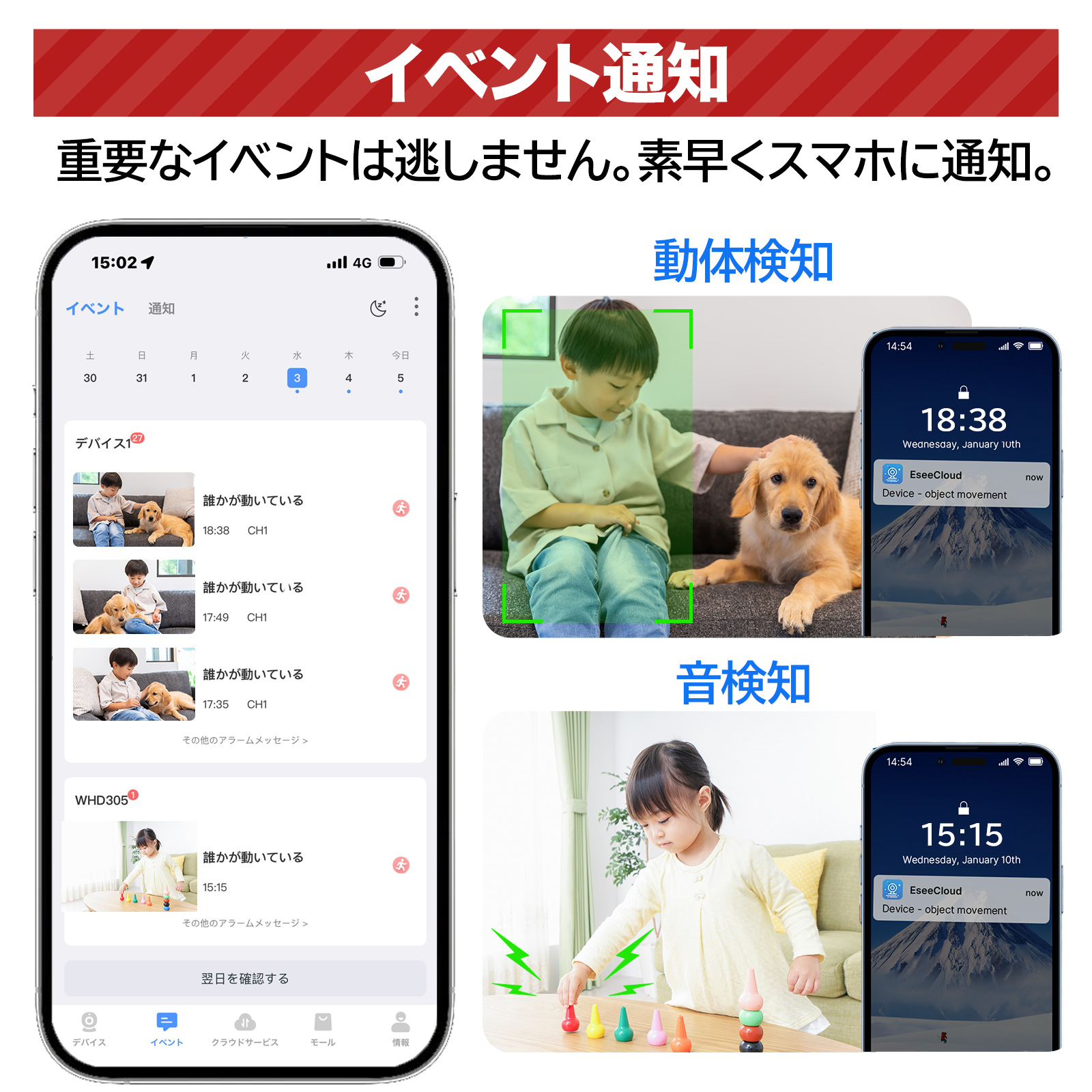 ★【最新5GHz-wifiに対応・360°全方位監視・圧倒的な超高画質】 ・みはるんPROのみ、WiFiルーターは2.4GHz規格と5GHz規格両方に対応可能です。 ・本電源コード式ワイヤレス防犯カメラのレンズ画角は130°、且つ左右0-355°、上下0-58°に楽に回転でき、PTZ機能によって、全方位監視できます。 ・5MP画素(超高解像度)レンズ搭載、高精細で鮮明に撮影します。(みはるんPROのみ) ・被写体の色調や解像力を漏れなく正確に再現、かなり細部までクリアで鮮明に撮影可能です。可愛い子供やペットの美しい瞬間を記録します。 ・5倍のデジタルズームによって、遠く撮影した物を拡大してはっきり確認できます。 ★【AI検知・自動追尾・携帯通知】 ★【双方向通話】 ・しっかり声を拾う高感度マイクユニット、高能率スピーカーを採用、記録した映像録音やカメラ側から流れている音声を大きくて綺麗に聞こえます。