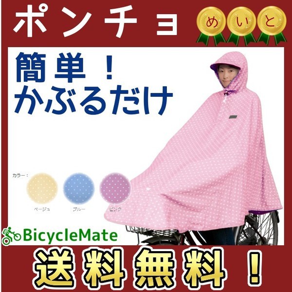 着やすさと涼しさ、前カゴも足元も濡れにくい構造で人気の「自転車屋さんのポンチョ」にかわいい水玉柄が仲間入り。