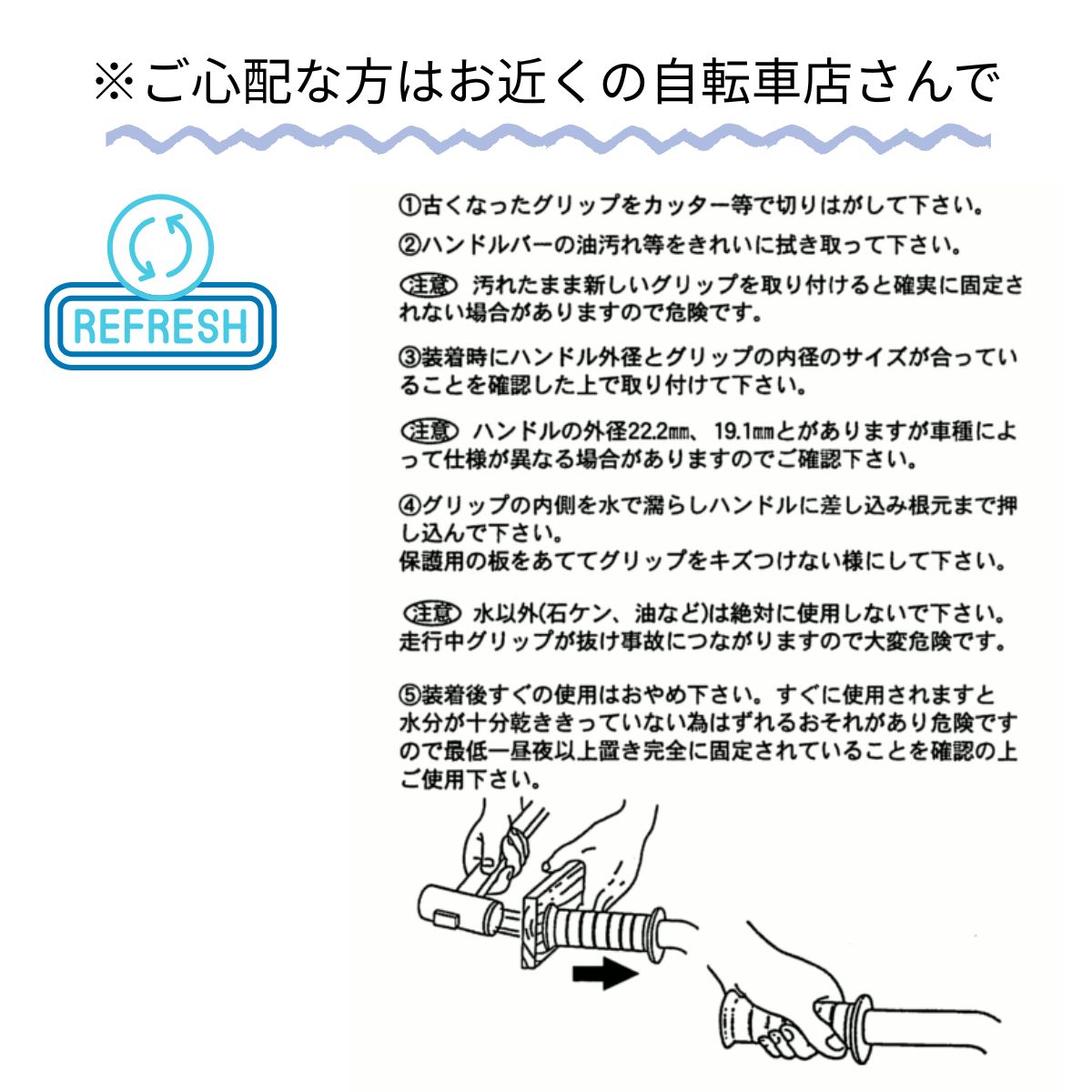※グリップを交換される際、せっけんや、油脂類をご利用にならないでください。