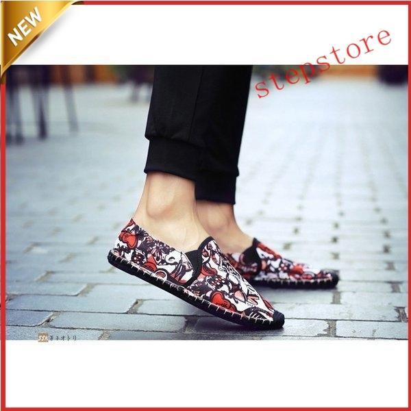 【大特価】スリッポンシューズカジュアルシューズローファーメンズ軽量歩きやすいエスパドリーユハード柄おもしろ防臭涼しい夏夏物