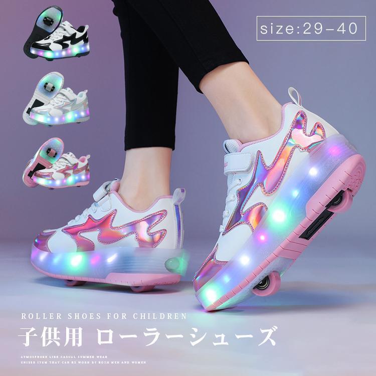 ローラーシューズ スニーカー 子供 2輪 led 7色照明 ローラーシューズ子供用 ローラースケート かかとボタン ヒーリーズ 23cm 男の子