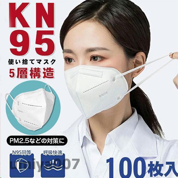 KN95マスク 100枚 マスク 平ゴム KN95 N95マスク同等 5層構造 使い捨てマスク 不織布マスク 使い捨て 白 立体マスク 女性用 男性用