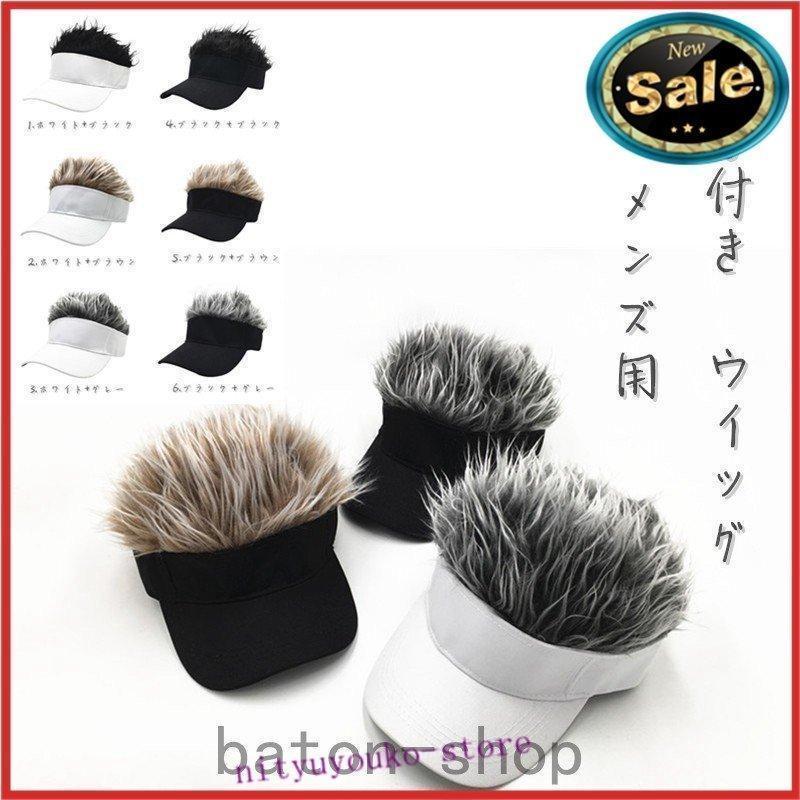 かつら付きサンバイザーメンズ帽子ウィッグゴルフ髪の毛登山釣りウォーキングキャップフレアーアウトドアショットヘアーバイザー