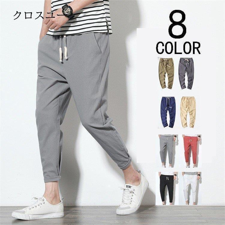 パンツメンズ サルエルパンツ 九分丈 7分丈 七分 クロップドパンツ メンズ カジュアルパンツ ウエストゴム 夏 秋