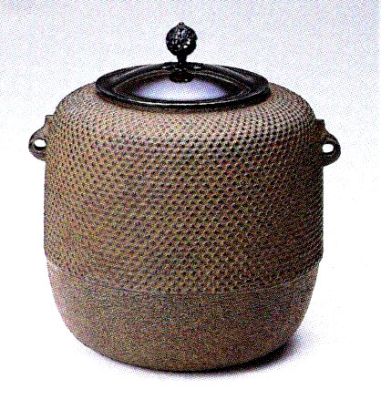 茶道具 No11 風炉釜 棗釜 霰地紋 高18.2×幅19.0cm