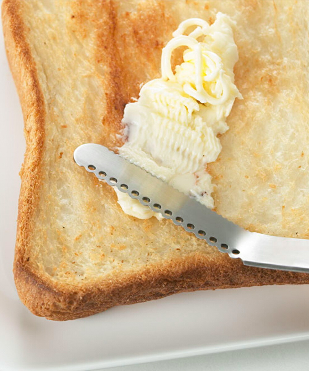 ななめの小さな穴が硬いバターもソフトにすくい取り、そのままふんわり塗れます。