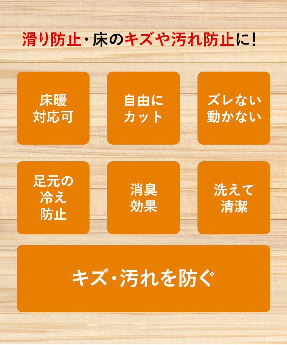 ・裏面吸着部分に汚れや水分、ワックスがつくとマットが非常に滑りやすくなりますのでご注意下さい。