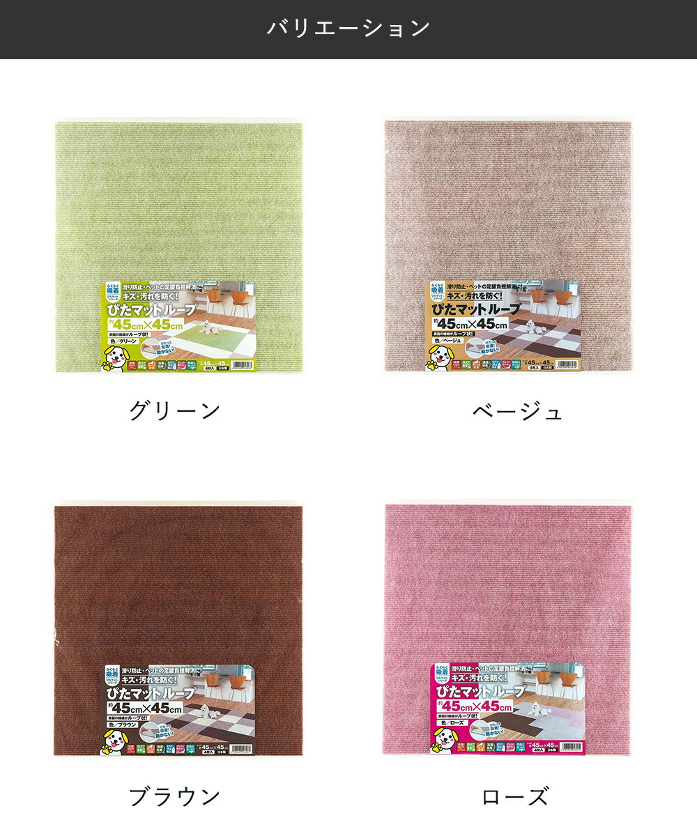 ぴたっと吸着、ズレにくいタイルカーペット。