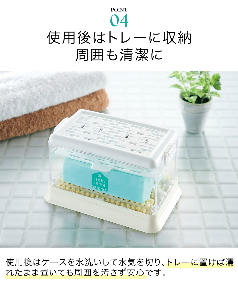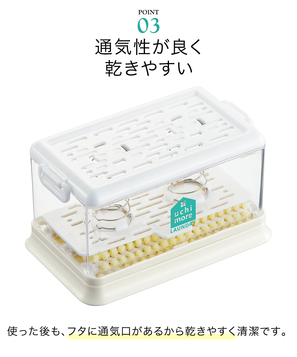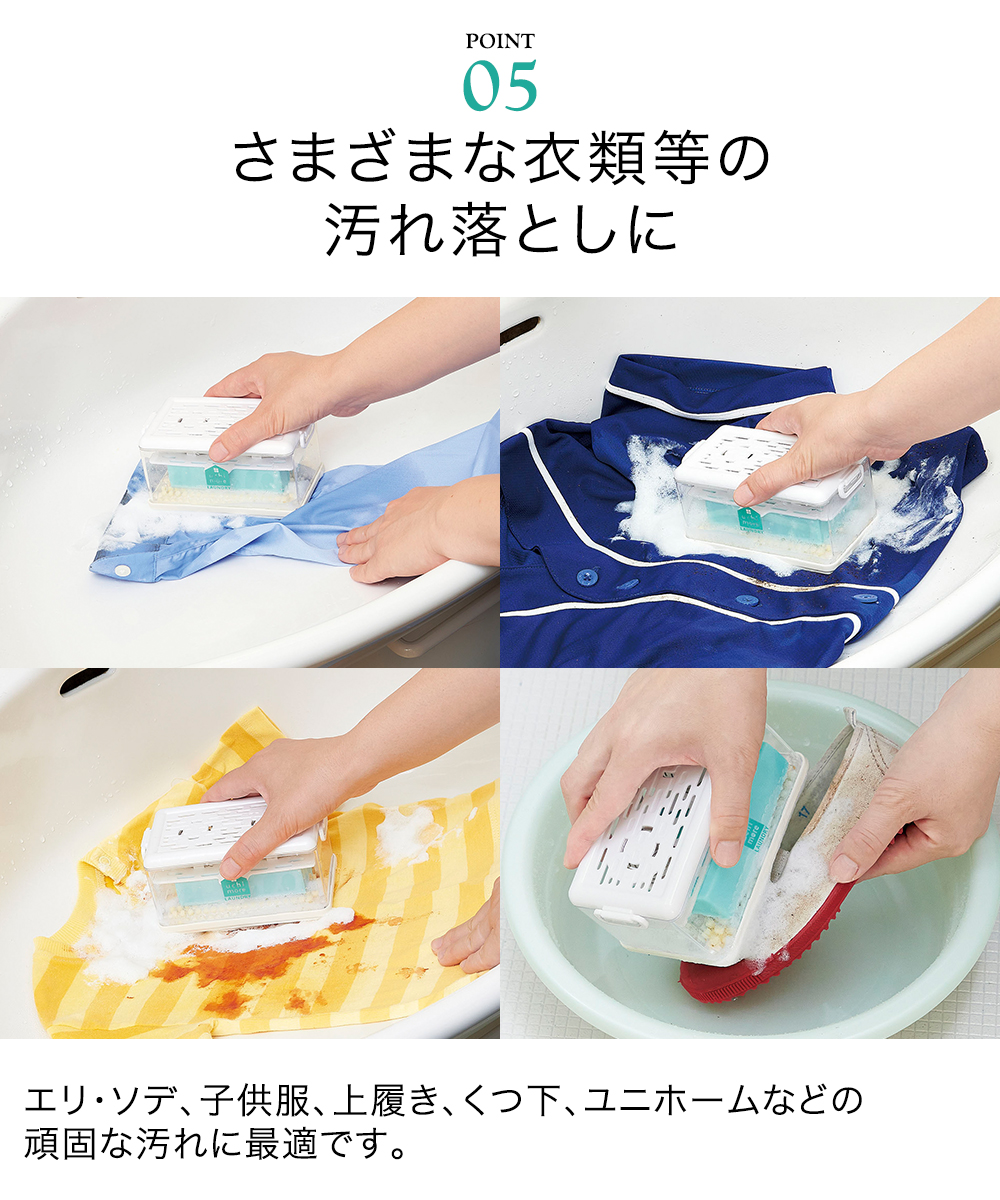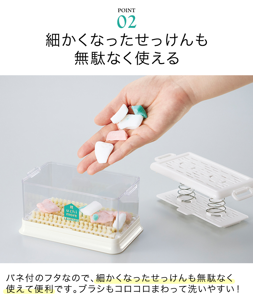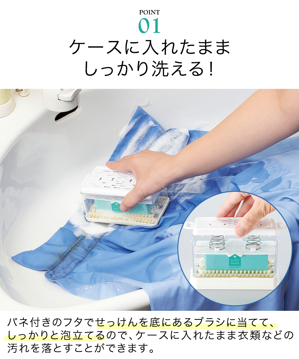これ一つで洗濯せっけんの不便を解消。しっかり汚れをかき出すブラシがポイント。