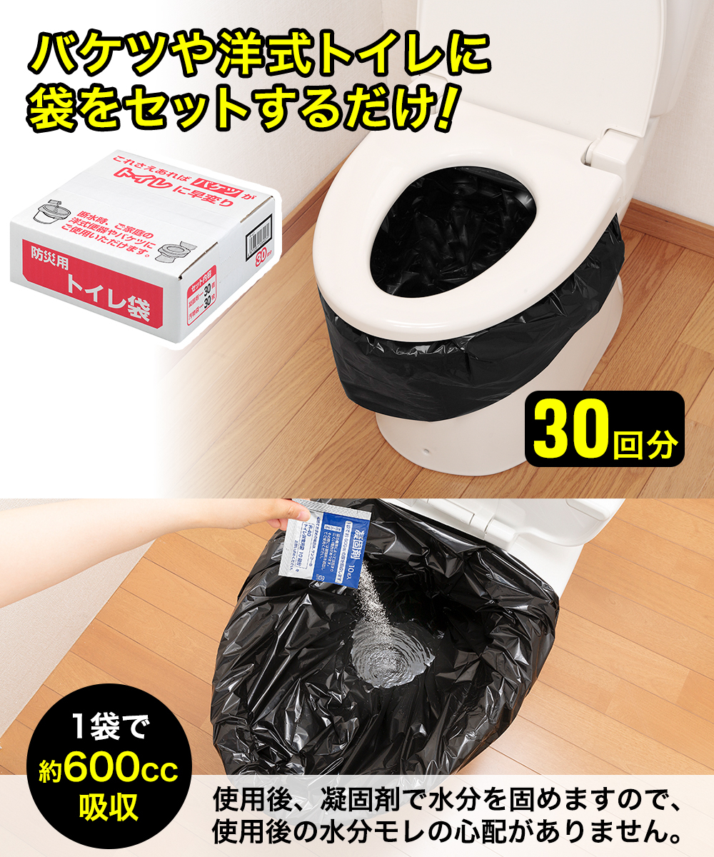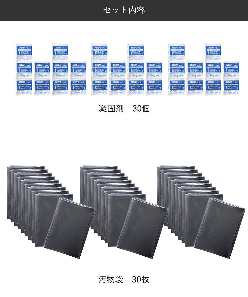 ・汚物袋と凝固剤を30回分セットしています。