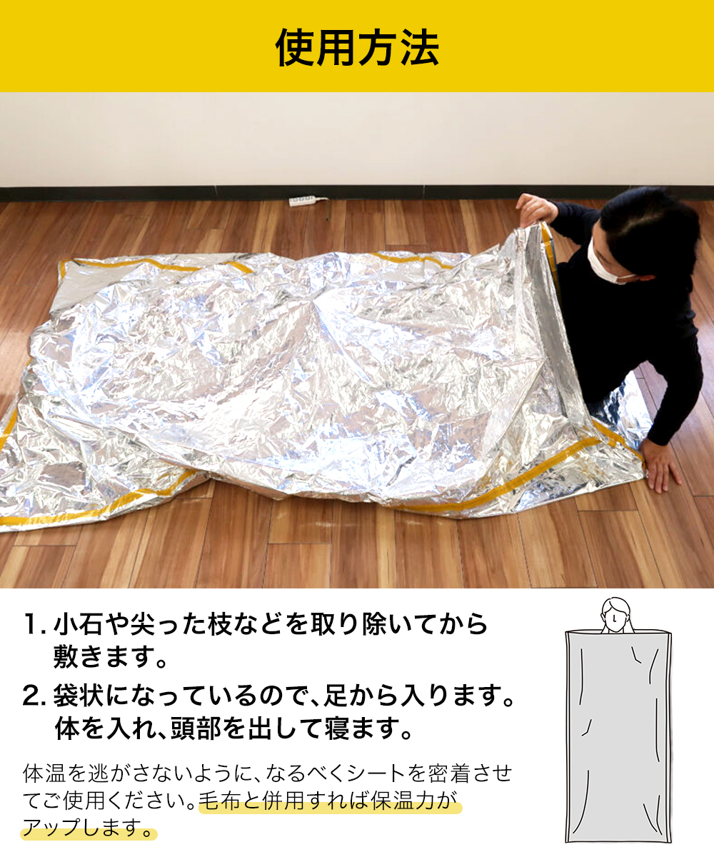体温を逃がさないように、なるべくシートを密着させてご使用ください。