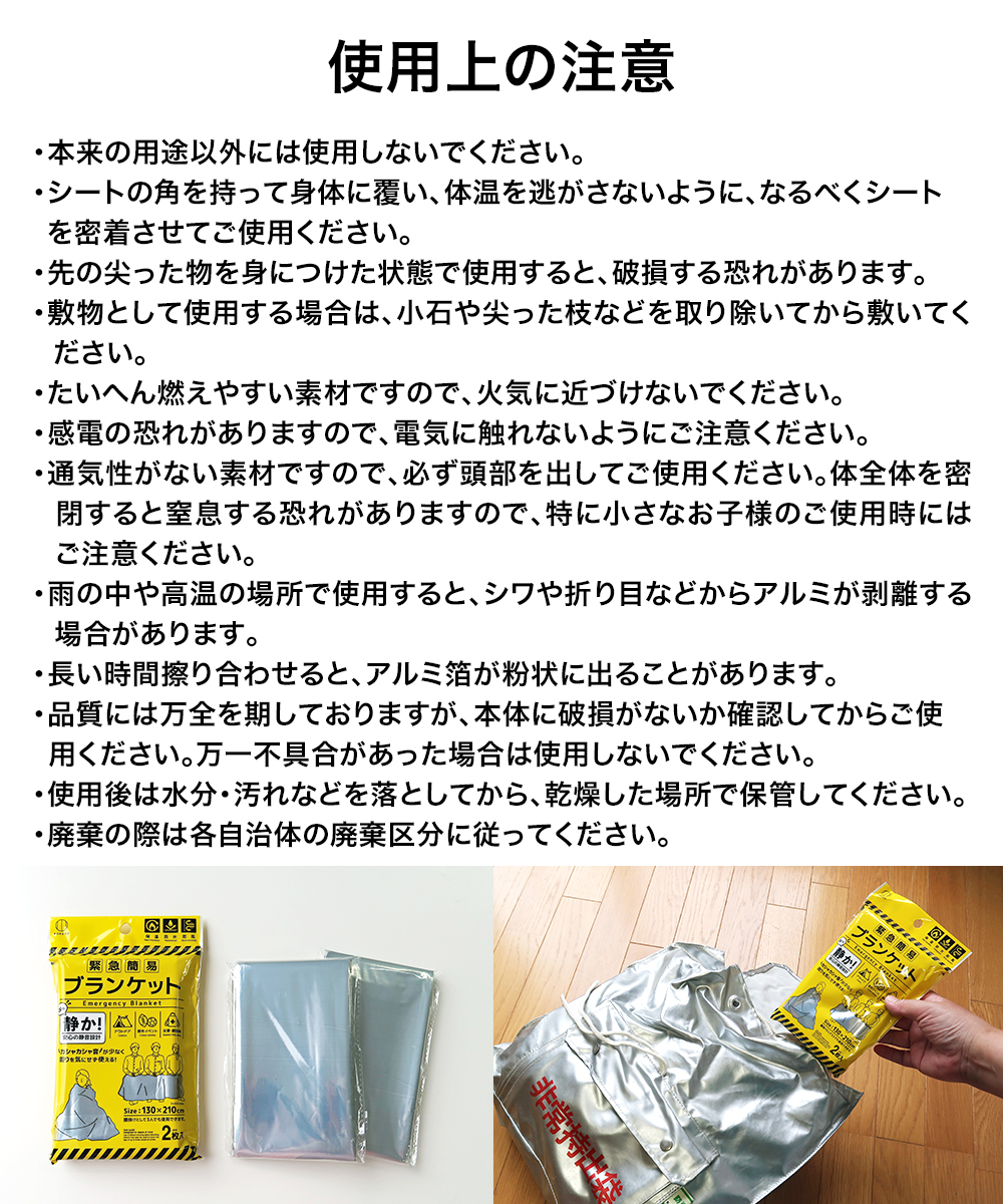 ・シートの角を持って身体に覆い、体温を逃がさないように、なるべくシートを密着させてご使用ください。