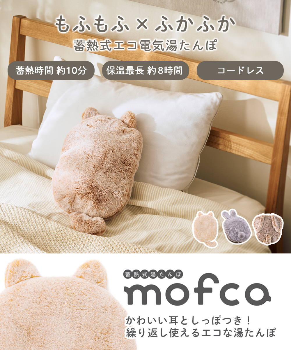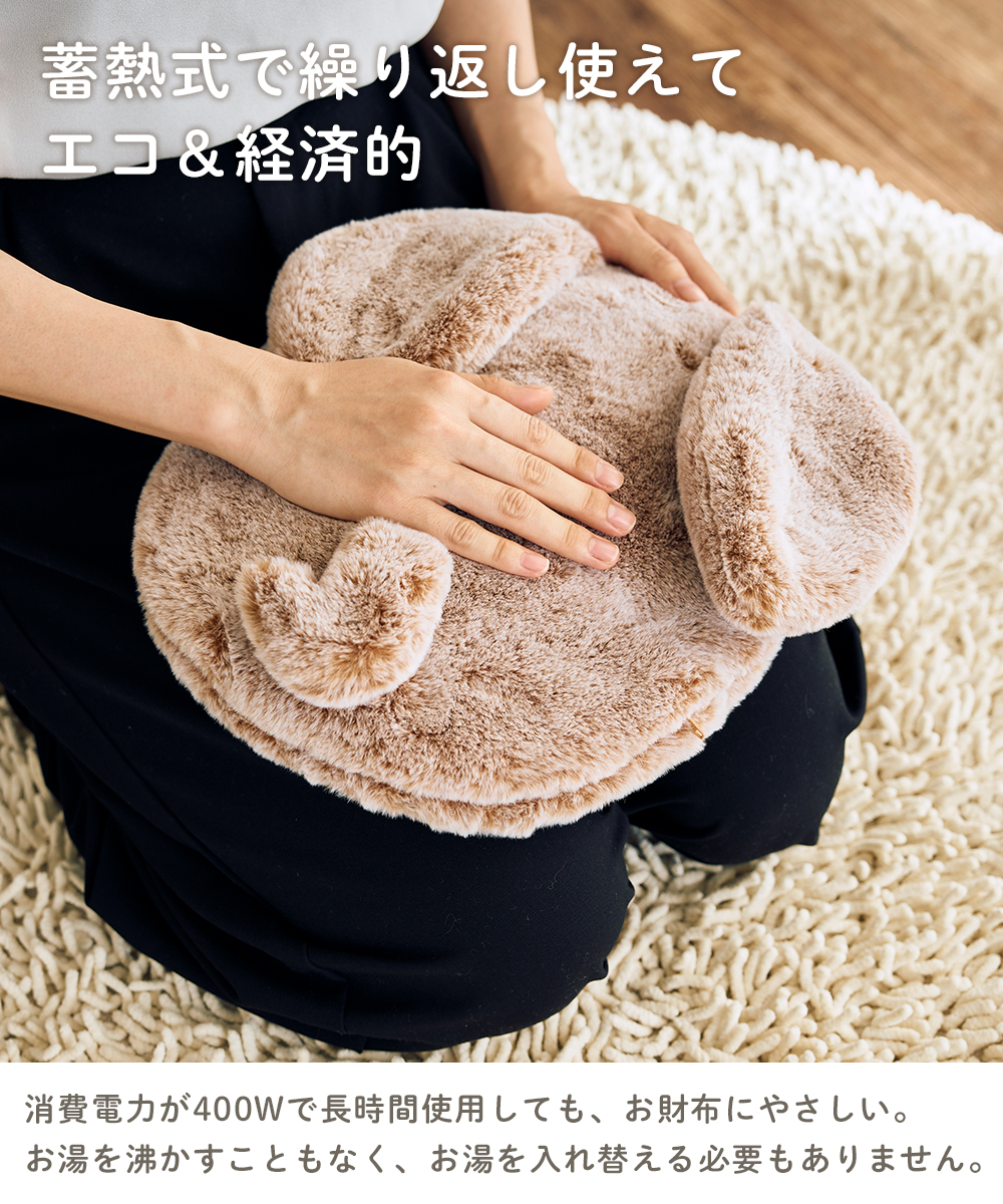 専用カバーには肌触りのいい生地を採用。かわいい耳としっぽつきで、ペットを抱っこしているようなぬくもりをご体感いただけます。