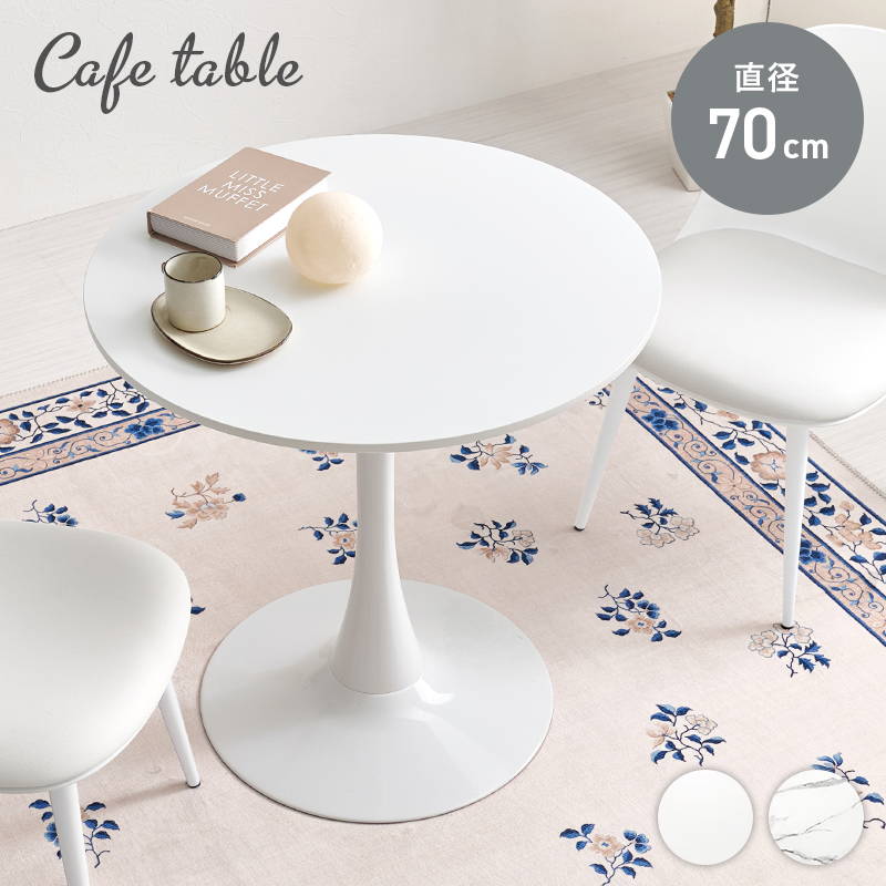 丸テーブル ダイニング カフェテーブル 直径70cm コンパクト 1本脚タイプ 円形 ホワイトインテリア