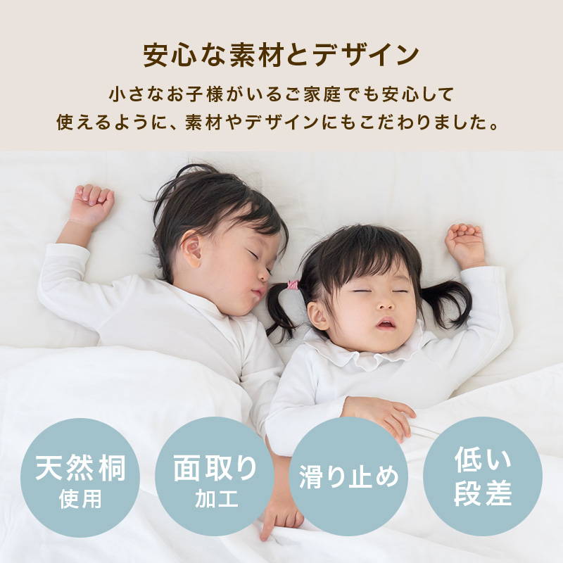 ●天然木桐材の調湿性とすのこの隙間から空気が通り抜ける構造で布団の湿気がたまりにくくなります。