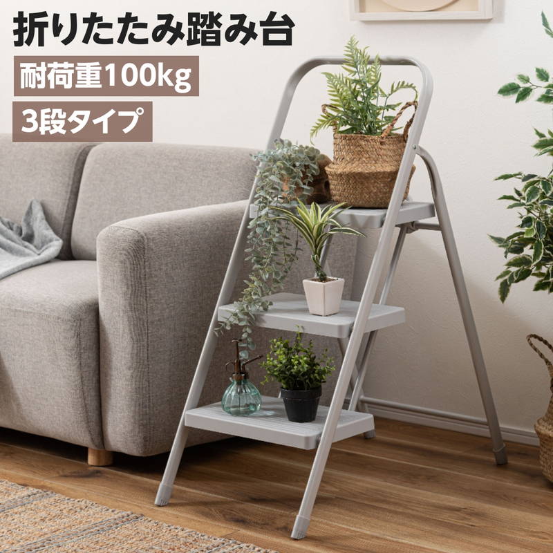 脚立 ステップ台 踏み台 折りたたみ 3段 取っ手付き 耐荷重100kg 完成品 足場台 折り畳み式 軽量 スリム コンパクト