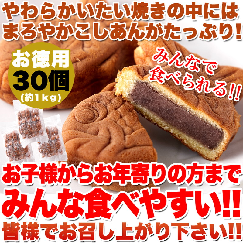 たい焼き やわらかミニたい焼き こしあんたっぷり 大容量 お徳用 30個入 個包装