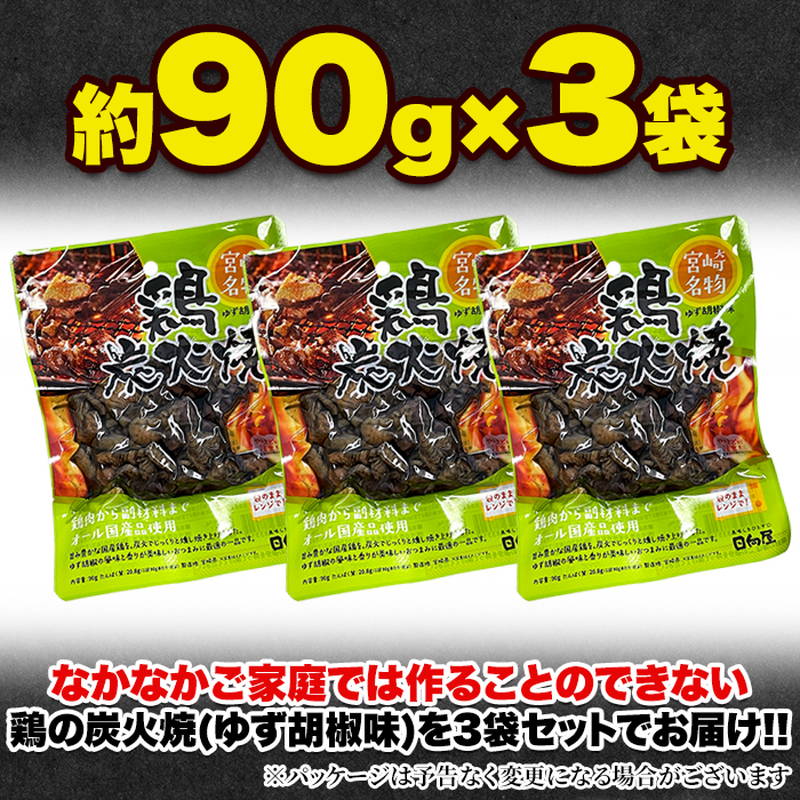 やきとり 焼鳥 鶏の炭火焼 柚子胡椒 90g×3袋 炭火香る宮崎名物 鶏炭火焼 おかず おつまみ