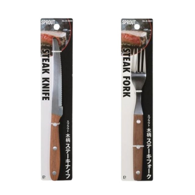 ステーキナイフセット ナイフ&フォーク スプラウト ステンレス 天然木 木柄ステーキ用カトラリー