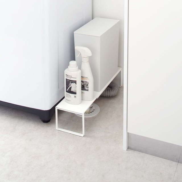 洗濯機防水パン上ラック 伸縮式 洗濯機排水口 ランドリーラック 収納ラック Plate プレート ホワイト 白