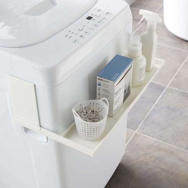 ●伸縮できるから洗濯機に合わせてマグネットで側面から挟みこむだけの簡単取付けラック。
