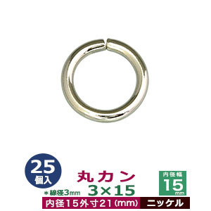 | 品 名:丸カン3×15【ニッケル】 サイズ:線径3mm 内径15mm 外寸21mm 材 質:鉄製 メッキ:ニッケル 詳 細:25個入1袋 加 工:溶接なし ◆丸カン 丸カンは、鉄線を曲げて加工した線材金具のことです。その名の通り丸い形をしたカン、円(輪)の形をした線材金具です。 ●丸カンをご使用時の注意点 ・丸カンを選ぶ際に、線の太さを表す「線径」、円の大きさを表す「内径」をご参考にお選びください。 ・線径とは、カンを形作る鉄線材の太さのことです。太ければ太いほどシッカリした仕上がりになり、負荷をかけても形が崩れません。 また、同じ内径でも線の太さによって、印象が変わりますので、金具を使う作品のイメージにあわせてお選びください。当店の丸カンは、鉄製です。主に服飾・雑貨の用途に使われるものを販売しておりますので、強度をお求めの方には不向きです。予めご了承ください。 ・丸カンは大きいものはベルトにしたり、鞄の取っ手部分の繋ぎ目に、小さいものはアクセサリーやストラップパーツとして多用されます。 その他雑貨小物などアイディア次第で広くお使いいただける商品です。 当店では各種サイズの他に、他店にはないメッキ加工を施したものもご用意しております。ニッケル(シルバー色)、アンティーク、ゴールド、ブラック等をご用意しております。ブラックには、 黒ニッケルとダークブラックがあり、黒ニッケルは金属特有の光沢ある黒色で、ダールブラックは光沢を潰したマッドな黒色になっています。 ●各種カンの大きさは下記です。 ・丸カンはコチラ ・二重カンはコチラ ・角カン・小カンはコチラ ・Dカン・月カンはコチラ ・ビラカンはコチラ ・ナスカンはコチラ ・手カンはコチラ ・リュックカン(一本線送り)はコチラ ・カニカンはコチラ ●各種カンお得セットは下記です。 ・小袋セット ・リーズナブルなお得セット ●その他、カシメ・ハトメは下記です。 ・カシメはコチラ ・ハトメはコチラ ■クラフト金具卸のカン金具 ・丸カン 円状の丸いカンです。大きいものから小さいものを集めました。 ・二重カン 二重カン・二重リングです。小さいものはキーホルダーやアクセサリー、ストラップなどに使われています。 ・角カン&小カン 縦:横の比率が大きくないタイプの四角いカンは、カバンや服飾雑貨に使われます。縦:横の比率が大きいタイプの長四角のカンは、カバンやベルト、ブレスレットに使われ、タルカンとも呼ばれます。 ・ビラカン 額縁の裏や、広告POP用金具として使われます。大カシメで止めてください。 ・Dカン&月カン カバンの肩紐などの長さ調節用などにも良く使われているDカンと月カン。各種サイズからお選びください。 ・ナスカン アクセサリーパーツやキーホルダー、カバン装飾具と広い用途で使われるナスカンです。 ・リュックカン(一本線送り)当店では一本線おくりと呼んでいる商品です。移動する線が真ん中にあり、紐調整金具として一般的な金具です。(関連商品:美錠) ・カニカン ストラップやキーホルダーなどに使われるカニカンとよばれる金具です。 |