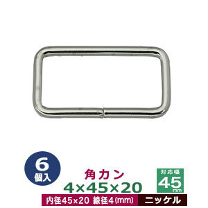 | 品 名:角カン4×45×20【ニッケル】 サイズ:線径4mm 内径45×20mm 材 質:鉄製 メッキ:ニッケル 詳 細:6個入1袋 加 工:溶接なし ◆角カン・小カン 角カン・小カンは、鉄線を曲げて加工し四角い形を作った線材金具です。 角カンとは、その名の通り四角い形をしたカンです。縦と横の比率が小さい、ズングリした印象をうける四角のカンです。小カンは角カンに比べると、縦横の比率が大きく平べったい印象のある四角環です。 角カン・小カンをご使用時の注意点 ・角カン・小カンを選ぶ際に、線の太さを表す「線径」、大きさを表す「内径」をご参考にお選びください。 ・線径とは、カンを形作る鉄線材の太さのことです。太ければ太いほどシッカリした仕上がりになり、負荷をかけても形が崩れません。 また、同じ内径でも線の太さによって、印象が変わりますので、金具を使う作品のイメージにあわせてお選びください。当店の角カン・小カンは、鉄製です。主に服飾・雑貨の用途に使われるものを販売しておりますので、強度をお求めの方には不向きです。予めご了承ください。 ●各種カンの大きさは下記です。 ・丸カンはコチラ ・二重カンはコチラ ・角カン・小カンはコチラ ・Dカン・月カンはコチラ ・ビラカンはコチラ ・ナスカンはコチラ ・手カンはコチラ ・リュックカン(一本線送り)はコチラ ・カニカンはコチラ ●各種カンお得セットは下記です。 ・小袋セット ・リーズナブルなお得セット ●その他、カシメ・ハトメは下記です。 ・カシメはコチラ ・ハトメはコチラ ■クラフト金具卸のカン金具 ・丸カン 円状の丸いカンです。大きいものから小さいものを集めました。 ・二重カン 二重カン・二重リングです。小さいものはキーホルダーやアクセサリー、ストラップなどに使われています。 ・角カン&小カン 縦:横の比率が大きくないタイプの四角いカンは、カバンや服飾雑貨に使われます。縦:横の比率が大きいタイプの長四角のカンは、カバンやベルト、ブレスレットに使われ、タルカンとも呼ばれます。 ・ビラカン 額縁の裏や、広告POP用金具として使われます。大カシメで止めてください。 ・Dカン&月カン カバンの肩紐などの長さ調節用などにも良く使われているDカンと月カン。各種サイズからお選びください。 ・ナスカン アクセサリーパーツやキーホルダー、カバン装飾具と広い用途で使われるナスカンです。 ・リュックカン(一本線送り)当店では一本線おくりと呼んでいる商品です。移動する線が真ん中にあり、紐調整金具として一般的な金具です。(関連商品:美錠) ・カニカン ストラップやキーホルダーなどに使われるカニカンとよばれる金具です。 |