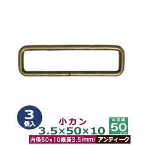 | 品 名:小カン3.5×50×10【アンティーク】 サイズ:線径3.5mm 内径50×10mm 材 質:鉄製 メッキ:アンティーク 詳 細:3個入1袋 加 工:溶接なし ◆角カン・小カン 角カン・小カンは、鉄線を曲げて加工し四角い形を作った線材金具です。 角カンとは、その名の通り四角い形をしたカンです。縦と横の比率が小さい、ズングリした印象をうける四角のカンです。小カンは角カンに比べると、縦横の比率が大きく平べったい印象のある四角環です。 角カン・小カンをご使用時の注意点 ・角カン・小カンを選ぶ際に、線の太さを表す「線径」、大きさを表す「内径」をご参考にお選びください。 ・線径とは、カンを形作る鉄線材の太さのことです。太ければ太いほどシッカリした仕上がりになり、負荷をかけても形が崩れません。 また、同じ内径でも線の太さによって、印象が変わりますので、金具を使う作品のイメージにあわせてお選びください。当店の角カン・小カンは、鉄製です。主に服飾・雑貨の用途に使われるものを販売しておりますので、強度をお求めの方には不向きです。予めご了承ください。 ●各種カンの大きさは下記です。 ・丸カンはコチラ ・二重カンはコチラ ・角カン・小カンはコチラ ・Dカン・月カンはコチラ ・ビラカンはコチラ ・ナスカンはコチラ ・手カンはコチラ ・リュックカン(一本線送り)はコチラ ・カニカンはコチラ ●各種カンお得セットは下記です。 ・小袋セット ・リーズナブルなお得セット ●その他、カシメ・ハトメは下記です。 ・カシメはコチラ ・ハトメはコチラ ■クラフト金具卸のカン金具 ・丸カン 円状の丸いカンです。大きいものから小さいものを集めました。 ・二重カン 二重カン・二重リングです。小さいものはキーホルダーやアクセサリー、ストラップなどに使われています。 ・角カン&小カン 縦:横の比率が大きくないタイプの四角いカンは、カバンや服飾雑貨に使われます。縦:横の比率が大きいタイプの長四角のカンは、カバンやベルト、ブレスレットに使われ、タルカンとも呼ばれます。 ・ビラカン 額縁の裏や、広告POP用金具として使われます。大カシメで止めてください。 ・Dカン&月カン カバンの肩紐などの長さ調節用などにも良く使われているDカンと月カン。各種サイズからお選びください。 ・ナスカン アクセサリーパーツやキーホルダー、カバン装飾具と広い用途で使われるナスカンです。 ・リュックカン(一本線送り)当店では一本線おくりと呼んでいる商品です。移動する線が真ん中にあり、紐調整金具として一般的な金具です。(関連商品:美錠) ・カニカン ストラップやキーホルダーなどに使われるカニカンとよばれる金具です。 |