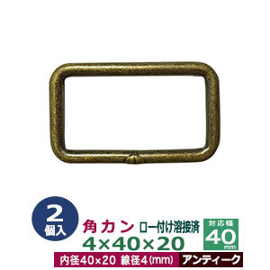 | 品 名:角カン4×50×20【アンティーク】 サイズ:線径4mm 内径50×20mm 材 質:鉄製 メッキ:アンティーク 詳 細:2個入1袋 加 工:溶接なし ◆角カン・小カン 角カン・小カンは、鉄線を曲げて加工し四角い形を作った線材金具です。 角カンとは、その名の通り四角い形をしたカンです。縦と横の比率が小さい、ズングリした印象をうける四角のカンです。小カンは角カンに比べると、縦横の比率が大きく平べったい印象のある四角環です。 角カン・小カンをご使用時の注意点 ・角カン・小カンを選ぶ際に、線の太さを表す「線径」、大きさを表す「内径」をご参考にお選びください。 ・線径とは、カンを形作る鉄線材の太さのことです。太ければ太いほどシッカリした仕上がりになり、負荷をかけても形が崩れません。 また、同じ内径でも線の太さによって、印象が変わりますので、金具を使う作品のイメージにあわせてお選びください。当店の角カン・小カンは、鉄製です。主に服飾・雑貨の用途に使われるものを販売しておりますので、強度をお求めの方には不向きです。予めご了承ください。 ●各種カンの大きさは下記です。 ・丸カンはコチラ ・二重カンはコチラ ・角カン・小カンはコチラ ・Dカン・月カンはコチラ ・ビラカンはコチラ ・ナスカンはコチラ ・手カンはコチラ ・リュックカン(一本線送り)はコチラ ・カニカンはコチラ ●各種カンお得セットは下記です。 ・小袋セット ・リーズナブルなお得セット ●その他、カシメ・ハトメは下記です。 ・カシメはコチラ ・ハトメはコチラ ■クラフト金具卸のカン金具 ・丸カン 円状の丸いカンです。大きいものから小さいものを集めました。 ・二重カン 二重カン・二重リングです。小さいものはキーホルダーやアクセサリー、ストラップなどに使われています。 ・角カン&小カン 縦:横の比率が大きくないタイプの四角いカンは、カバンや服飾雑貨に使われます。縦:横の比率が大きいタイプの長四角のカンは、カバンやベルト、ブレスレットに使われ、タルカンとも呼ばれます。 ・ビラカン 額縁の裏や、広告POP用金具として使われます。大カシメで止めてください。 ・Dカン&月カン カバンの肩紐などの長さ調節用などにも良く使われているDカンと月カン。各種サイズからお選びください。 ・ナスカン アクセサリーパーツやキーホルダー、カバン装飾具と広い用途で使われるナスカンです。 ・リュックカン(一本線送り)当店では一本線おくりと呼んでいる商品です。移動する線が真ん中にあり、紐調整金具として一般的な金具です。(関連商品:美錠) ・カニカン ストラップやキーホルダーなどに使われるカニカンとよばれる金具です。 |