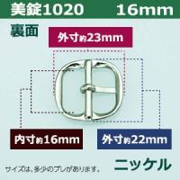 | 品 名:美錠1020 16mm【ニッケル】 サイズ:外寸22mm×23mm内寸16mm 材 質:本体 亜鉛合金製・ピン 鉄製 メッキ:ニッケル 詳 細:2個入り1袋 ●美錠の大きさは下記です。 ・美錠3104はコチラ ・美錠1020はコチラ ・美錠462はコチラ ・美錠410はコチラ ・管美錠はコチラ ・舟形美錠はコチラ ・梯子美錠はコチラ ・マグネットバックルはコチラ ●美錠お得セットは下記です。 ・小袋セット ・リーズナブルなお得セット ●その他、カシメ・ハトメは下記です。 ・カシメはコチラ ・ハトメはコチラ ■クラフト金具卸の美錠 美錠とは、ベルトなどに使われる紐調節・紐接続金具です。 一般に大きいものをバックル、小さめの雑貨に使われるものを美錠(尾錠)と呼んでいます。 いすれも、洋服・鞄・ベルトに使われる帯状の紐を、ユーザーが長さを調節しながら接続開閉できる金具が美錠です。 クラフト金具卸では主にカン類にピン(足)が付いたピンバックルを中心にお取り扱いしています。 ピンバックルの特徴は、ベルト本体にピン(足)を通すための穴が必要です。穴は小さいものならそのまま、大きめの穴ならハトメなどで補強する必要があります。 同じ平紐の調節金具である送り金具との違いは、ピンが有るものが美錠です。 尚、ユーザーに開閉させず、紐の長さを調整するだけの役目なら送り金具の方が適しています。 ・マグネットバックル(ベルト本体に穴をあけない尾錠・バックル ) クラフト金具卸では、穴をあけないベルト金具として磁石で開閉するマグネット美錠をお取り扱いしています。 ・日型美錠(舟形・梯子・美錠3104・美錠1020他) 形状が漢字の「日」の字をしているものを「日型美錠」と呼んでいます。 ベルト装着時に美錠の外形フェースがそのまま出てきます。 ・口型美錠(管美錠・美錠462・・美錠410) 漢字の「口」の字をしている美錠を口型美錠と呼んでいす。 口型美錠は、ピン(足)がついている方をベルト紐先端と接着させる必要があり、そちらの辺は隠れます。 接着させる辺の直線部分がベルト幅となります。「内径」の数字を参考に、ベルト幅から最適な美錠をお探しください。 |